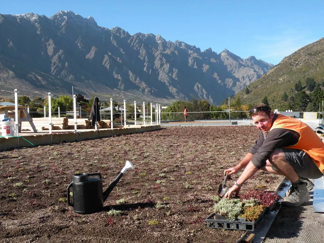 The Remarkables Primary School is the first school in New Zealand to have a green roof. A need for greater learning space plus a desire to ‘blend’ the school into the landscape were the driving forces for this school’s green roof. The green roof is situated alongside a boardwalk that acts as the schools unique entrance way, meaning the roof is a big part of the school’s look and feel. The plan is that this area will also be used as an outdoor classroom.
